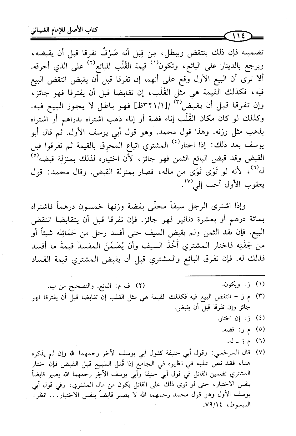 (¬3) م ز + انتقض البيع فيه فكذلك القيمة هي مثل القلب إن تقابضا قبل أن يفترقا فهو جائز وإن تفرقا قبل أن يقبض.