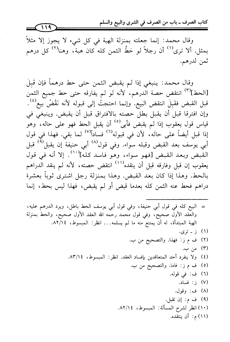 (¬10) انظر لشرح المسألة: المبسوط، 14/ 82.