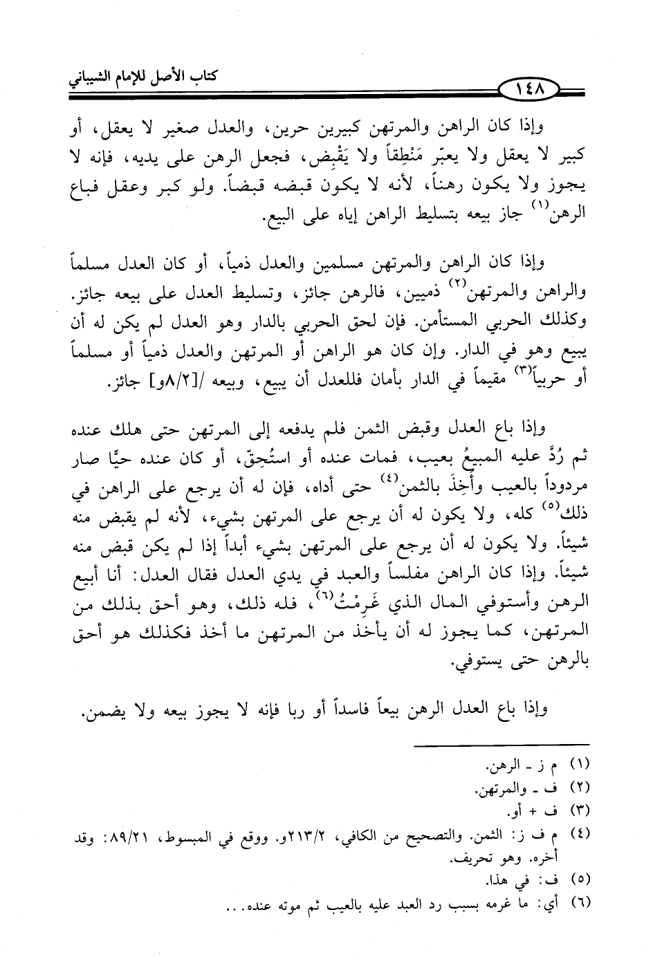 وإذا كان الراهن والمرتهن مسلمين والعدل ذمياً، أو كان العدل مسلماً والراهن والمرتهن (¬2) ذميين، فالرهن جائز، وتسليط العدل على بيعه جائز. وكذلك الحربي المستأمن. فإن لحق الحربي بالدار وهو العدل لم يكن له أن يبيع وهو في الدار. وإن كان هو الراهن أو المرتهن والعدل ذمياً أو مسلماً أو حربياً (¬3) مقيماً في الدار بأمان فللعدل أن يبيع، وبيعه جائز.