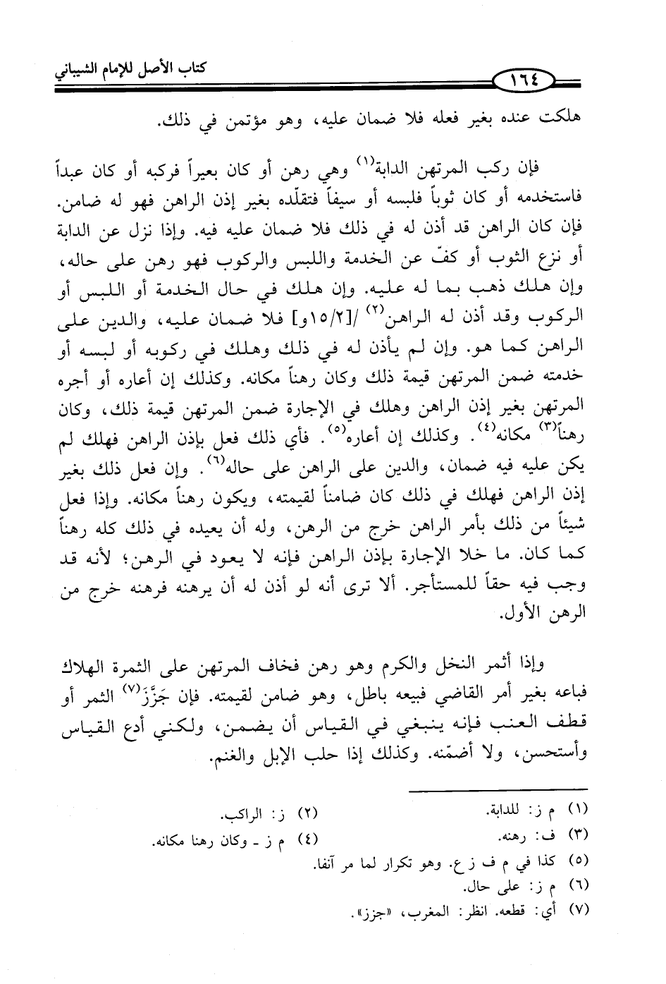 فإن ركب المرتهن الدابة (¬1) وهي رهن أو كان بعيراً فركبه أو كان عبداً فاستخدمه أو كان ثوباً فلبسه أو سيفاً فتقلّده بغير إذن الراهن فهو له ضامن. فإن كان الراهن قد أذن له في ذلك فلا ضمان عليه فيه. وإذا نزل عن الدابة أو نزع الثوب أو كفّ عن الخدمة واللبس والركوب فهو رهن على حاله، وإن هلك ذهب بما له عليه. وإن هلك في حال الخدمة أو اللبس أو الركوب وقد أذن له الراهن (¬2) فلا ضمان عليه، والدين على الراهن كما هو. وإن لم يأذن له في ذلك وهلك في ركوبه أو لبسه أو خدمته ضمن المرتهن قيمة ذلك وكان رهناً مكانه. وكذلك إن أعاره أو أجره المرتهن بغير إذن الراهن وهلك في الإجارة ضمن المرتهن قيمة ذلك، وكان رهناً (¬3) مكانه (¬4). وكذلك إن أعاره (¬5). فأي ذلك فعل بإذن الراهن فهلك لم يكن عليه فيه ضمان، والدين على الراهن على حاله (¬6). وإن فعل ذلك بغير إذن الراهن فهلك في ذلك كان ضامناً لقيمته، ويكون رهناً مكانه. وإذا فعل شيئاً من ذلك بأمر الراهن خرج من الرهن، وله أن يعيده في ذلك كله رهناً كما كان. ما خلا الإجارة بإذن الراهن فإنه لا يعود في الرهن؛ لأنه قد وجب فيه حقاً للمستأجر. ألا ترى أنه لو أذن له أن يرهنه فرهنه خرج من الرهن الأول.