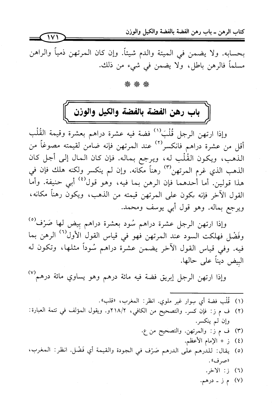 باب رهن الفضة بالفضة والكيل والوزن