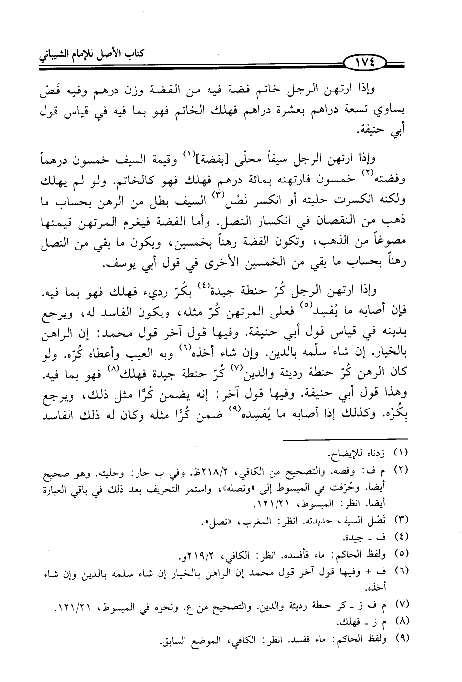 (¬2) م ف: وفصه. والتصحيح من الكافي، 2/ 218 ظ. وفي ب جار: وحليته. وهو صحيح أيضا. وحُرّفت في المبسوط إلى "ونصله"، واستمر التحريف بعد ذلك في باقي العبارة أيضا. انظر: المبسوط، 2/ 121.
