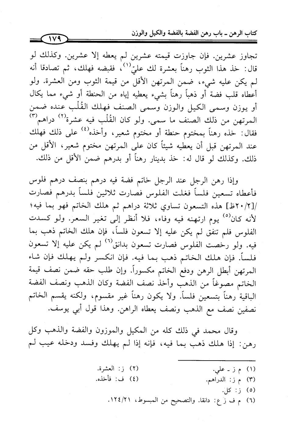 (¬6) اف ز ع: دانقا. والتصحيح من المبسوط، 21/ 124.