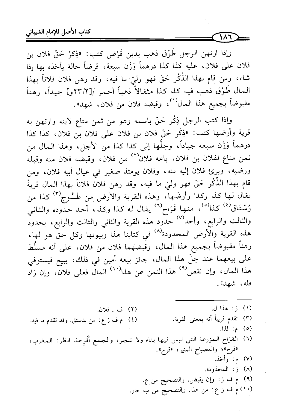 وإذا ارتهن الرجل طَوْق ذهب بدين قَرْض كتب: "ذِكْرُ حَقّ فلان بن فلان على فلان، عليه كذا كذا درهماً وَزْن سبعة، قرضاً حالة يأخذه بها إذا شاء، ومن قام بهذا الذِّكْر حَقّ فهو وليّ ما فيه، وقد رهن فلان فلاناً بهذا المال طَوْق ذهب فيه كذا كذا مثقالاً ذهباً أحمر جيداً، رهناً مقبوضاً بجميع هذا المال (¬1)، وقبضه فلان من فلان، شهد".