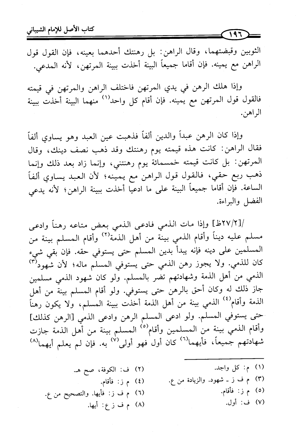 وإذا مات الذمي فادعى الذمي بعض متاعه رهناً وادعى مسلم عليه ديناً وأقام الذمي بينة من أهل الذمة (¬2) وأقام المسلم بينة من المسلمين على دينه فإنه يبدأ بدين المسلم حتى يستوفي حقه. فإن بقي شيء كان للذمي. ولا يجوز رهن الذمي حتى يستوفي المسلم ماله؛ لأن شهود (¬3) الذمي من أهل الذمة وشهادتهم تضر بالمسلم. ولو كان شهود الذمي مسلمين جاز ذلك له وكان أحق بالرهن حتى يستوفي. ولو أقام المسلم بينة من أهل الذمة وأقام (¬4) الذمي بينة من أهل الذمة أخذت ببينة المسلم، ولا يكون رهناً حتى يستوفي المسلم. ولو ادعى المسلم الرهن وادعى الذمي [الرهن كذلك] وأقام الذمي بينة من المسلمين وأقام (¬5) المسلم بينة من أهل الذمة جازت شهادتهم جميعاً، فأيهما (¬6) كان أول فهو أولى (¬7) به. فإن لم يعلم أيهما (¬8)