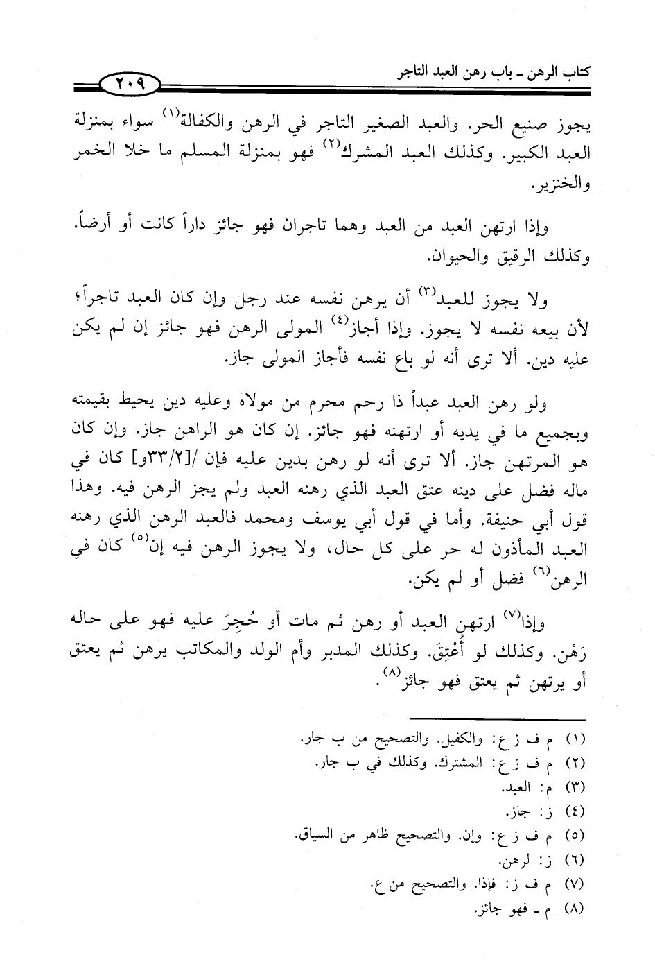يجوز صنيع الحر. والعبد الصغير التاجر في الرهن والكفالة (¬1) سواء بمنزلة العبد الكبير. وكذلك العبد المشرك (¬2) فهو بمنزلة المسلم ما خلا الخمر والخنزير.