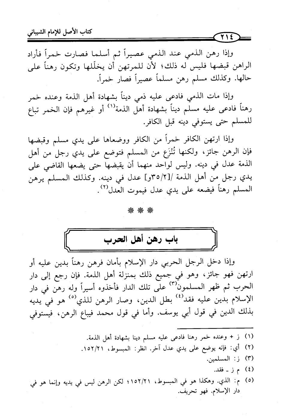 (¬5) م: الذي. وهكذا هو في المبسوط، 21/ 152؛ لكن الرهن ليس في يديه وإنما هو في دار الإسلام. فهو تحريف.