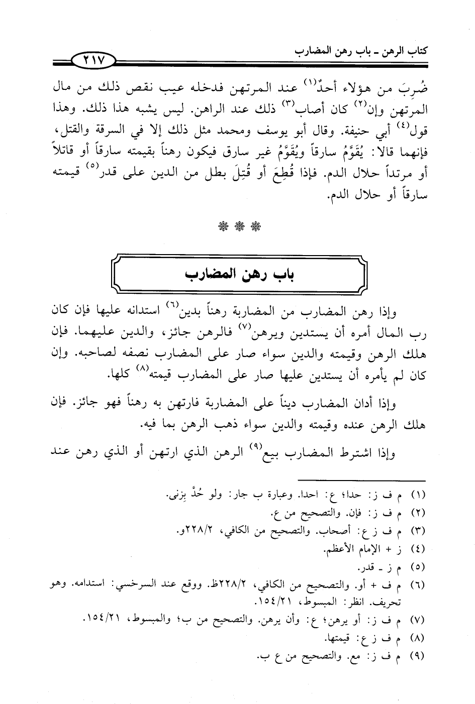 (¬6) م ف + أو. والتصحيح من الكافي، 2/ 228 ظ. ووقع عند السرخسي: استدامه. وهو تحريف. انظر. المبسوط، 21/ 154.