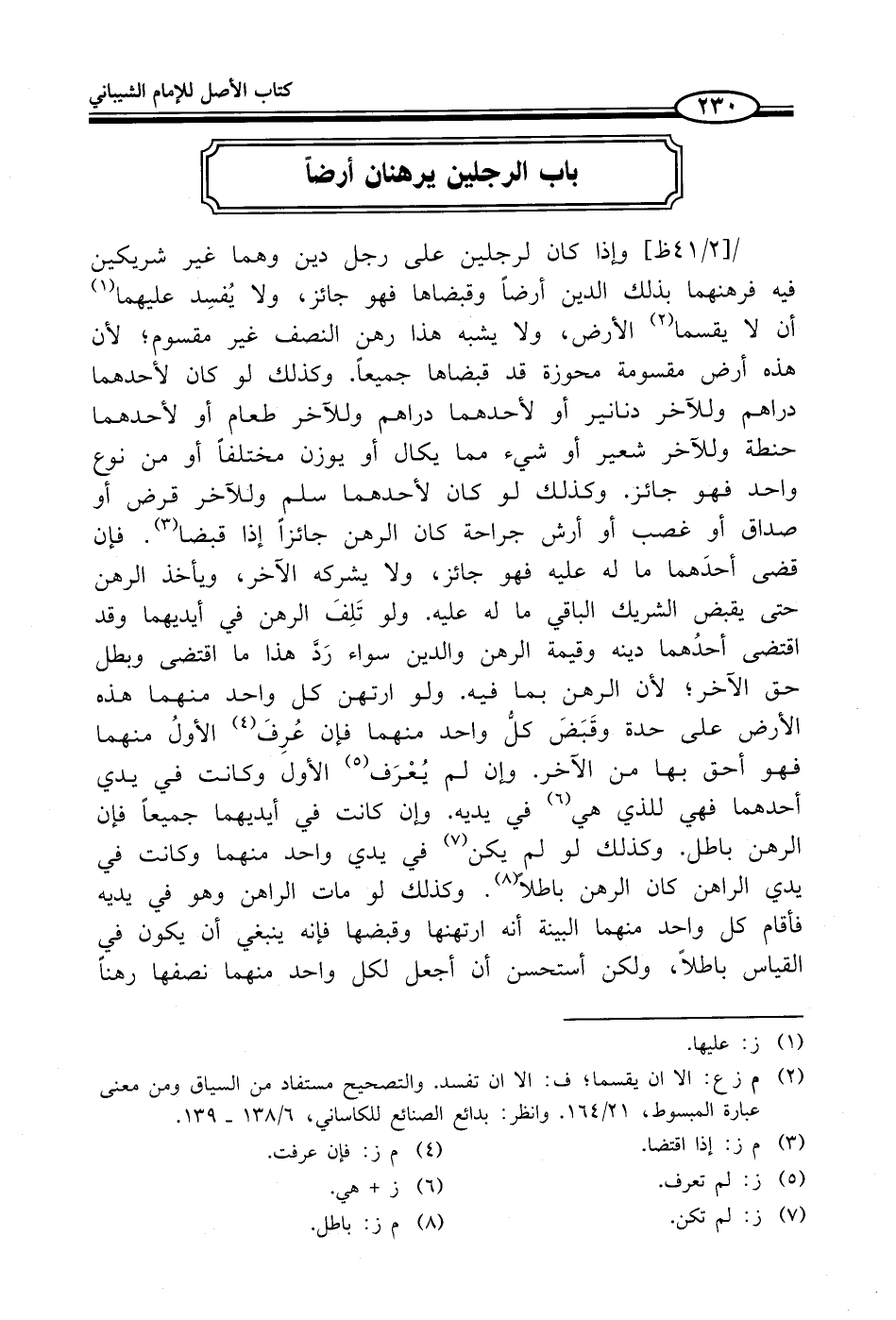 (¬2) م ز ع: الا ان يقسما؛ ف: الا ان تفسد. والتصحيح مستفاد من السياق ومن معنى عبارة المبسوط، 21/ 164. وانظر: بدائع الصنائع للكاساني، 6/ 138 - 139.