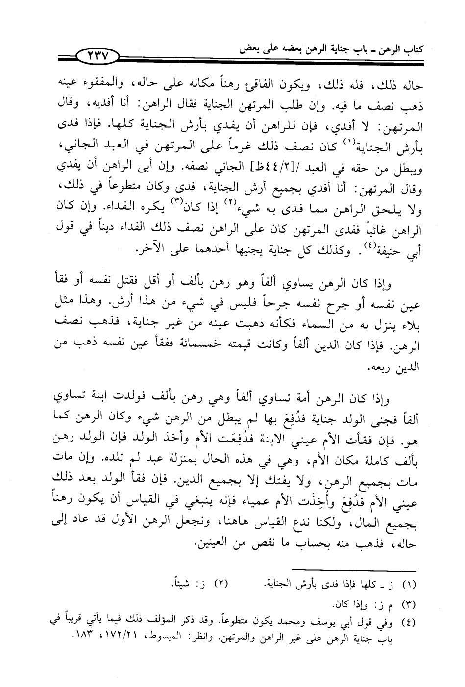 (¬4) وفي قول أبي يوسف ومحمد يكون متطوعاً. وقد ذكر المؤلف ذلك فيما يأتي قريباً في باب جناية الرهن على غير الراهن والمرتهن. وانظر: المبسوط، 21/ 172، 183.