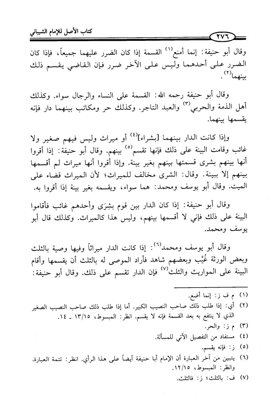 (¬6) يتبين من آخر العبارة أن الإمام أبا حنيفة أيضاً على هذا الرأي. انظر: تتمة العبارة. وانظر: المبسوط، 15/ 12.