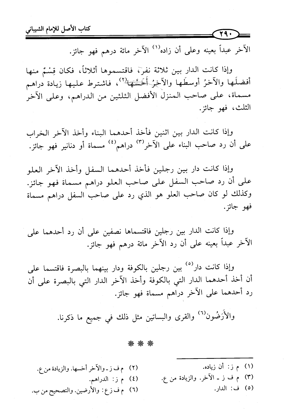 وإذا كانت الدار بين ثلاثة نفر، فاقتسموها أثلاثاً، فكان قِسْمٌ منها أفضلَها والآخرُ أوسطَها والآخرُ أخَسَّها (¬2)، فاشترط عليها زيادة دراهم مسماة، على صاحب المنزل الأفضل الثلثين من الدراهم، وعلى الآخر الثلث، فهو جائز.