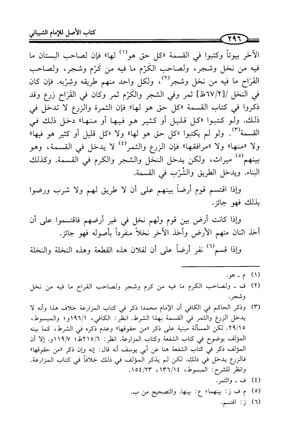 (¬3) وذكر الحاكم في الكافي أن الإمام محمدا ذكر في كتاب المزارعة خلاف هذا وأنه لا يدخل الزرع والثمر في القسمة بهذا الشرهـ انظر: الكافي، 1/ 96 و؛ والمبسوط، 15/ 29. لكن المسألة مبنية على ذكر "من حقوقها" وعدم ذكره في الشرط، كما بينه المؤلف بوضوح في كتاب الشفعة وكتاب المزارعة. انظر: 6/ 215 ظ؛ 7/ 119 و. إلا أن المؤلف ذكر في كتاب الشفعة هنا عن أبي يوسف أنه قال: إنه وإن ذكر "من حقوقها" فالزرع يدخل في ذلك. لكن لم يذكر المؤلف في ذلك خلافاً في كتاب المزارعة. وانظر للشرح: المبسوط، 14/ 136، 23/ 154.