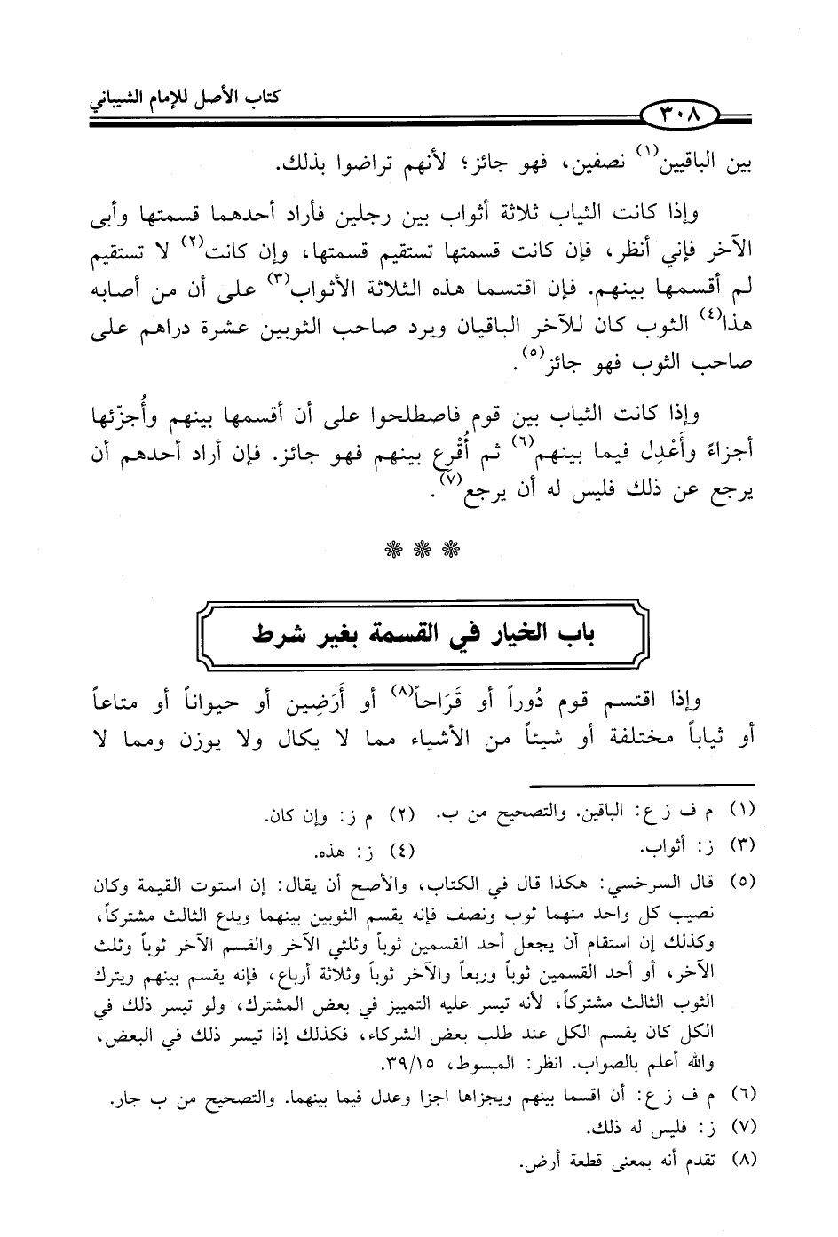 باب الخيار في القسمة بغير شرط