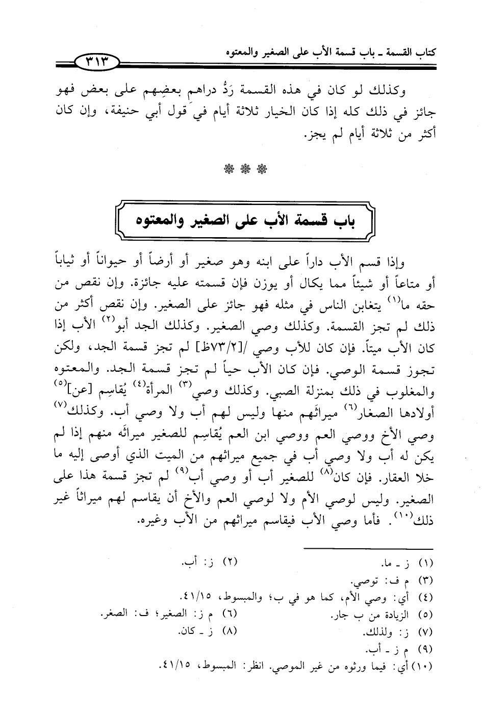 (¬10) أي: فيما ورثوه من غير الموصي. انظر: المبسوط، 15/ 41.