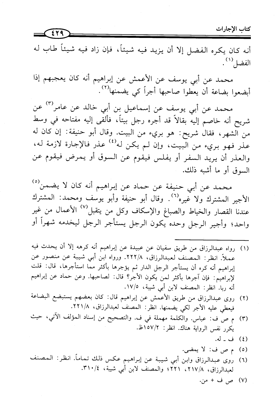 (¬6) روى عبدالرزاق وابن أبي شيبة عن إبراهيم عكس ذلك تماماً. انظر: المصنف لعبد الرزاق، 8/ 217، 221؛ والمصنف لابن أبي شيبة، 4/ 310.