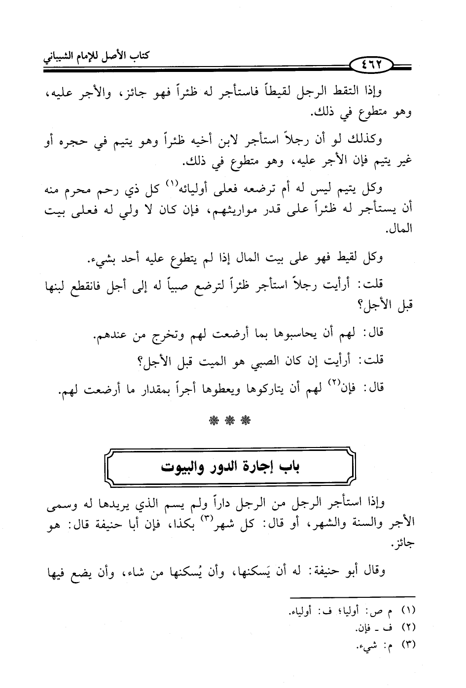 باب إجارة الدور والبيوت