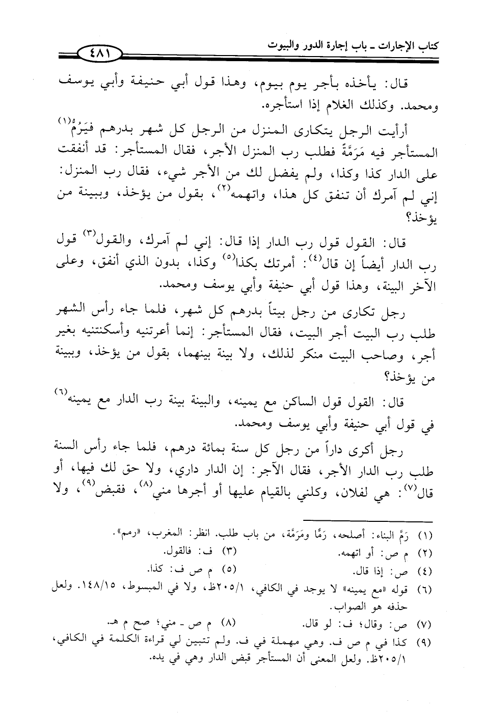 (¬9) كذا في م ص ف. وهي مهملة في ف. ولم تتبين في قراءة الكلمة في الكافي، 1/ 205 ظ. ولعل المعنى أن المستأجر قبض الدار وهي في يده.