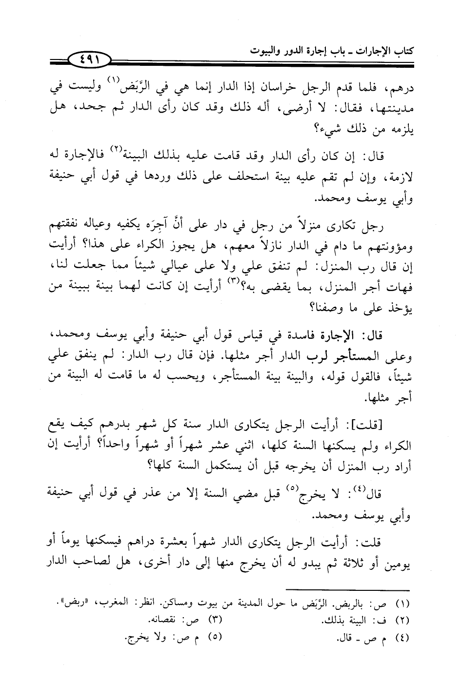 قال: إن كان رأى الدار وقد قامت عليه بذلك البينة (¬2) فالإجارة له لازمة، وإن لم تقم عليه بينة استحلف على ذلك وردها في قول أبي حنيفة وأبي يوسف ومحمد.