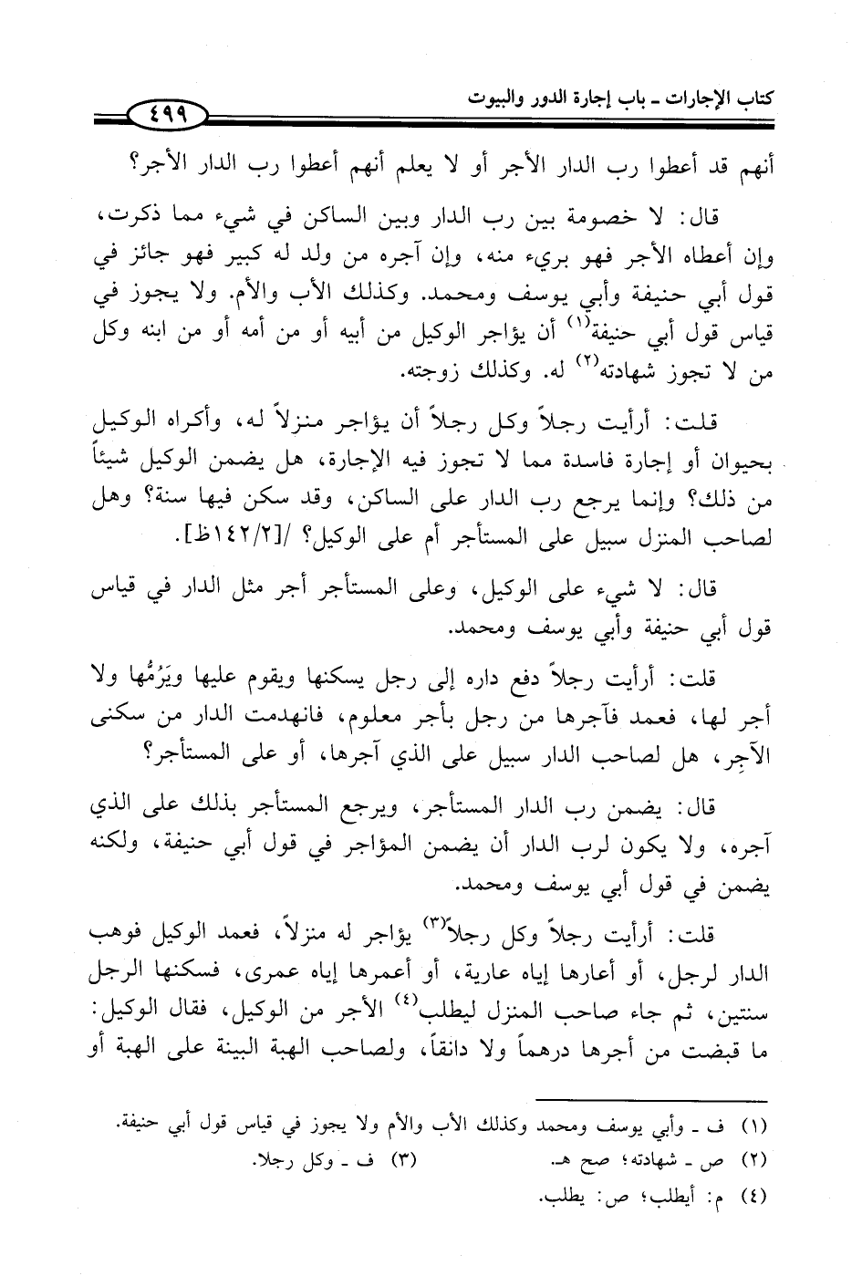 قال: لا خصومة بين رب الدار وبين الساكن في شيء مما ذكرت، وإن أعطاه الأجر فهو بريء منه، وإن آجره من ولد له كبير فهو جائز في قول أبي حنيفة وأبي يوسف ومحمد. وكذلك الأب والأم. ولا يجوز في قياس قول أبي حنيفة (¬1) أن يؤاجر الوكيل من أبيه أو من أمه أو من ابنه وكل من لا تجوز شهادته (¬2) له. وكذلك زوجته.