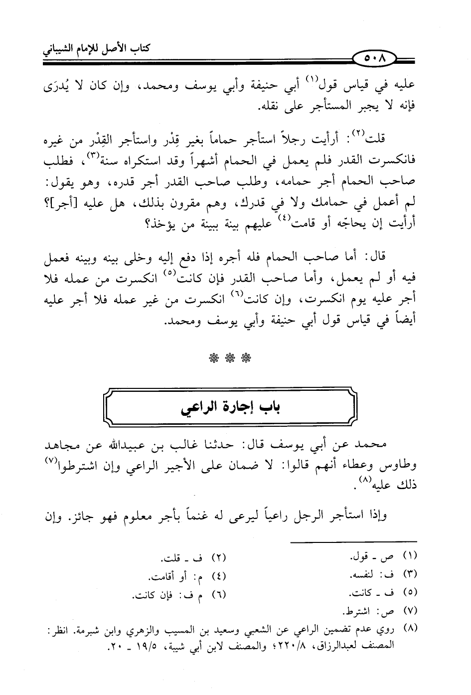 (¬8) روي عدم تضمين الراعي عن الشعبي وسعيد بن المسيب والزهري وابن شبرمة. انظر: المصنف لعبد الرزاق، 8/ 220؛ والمصنف لابن أبي شيبة، 5/ 19 - 20.