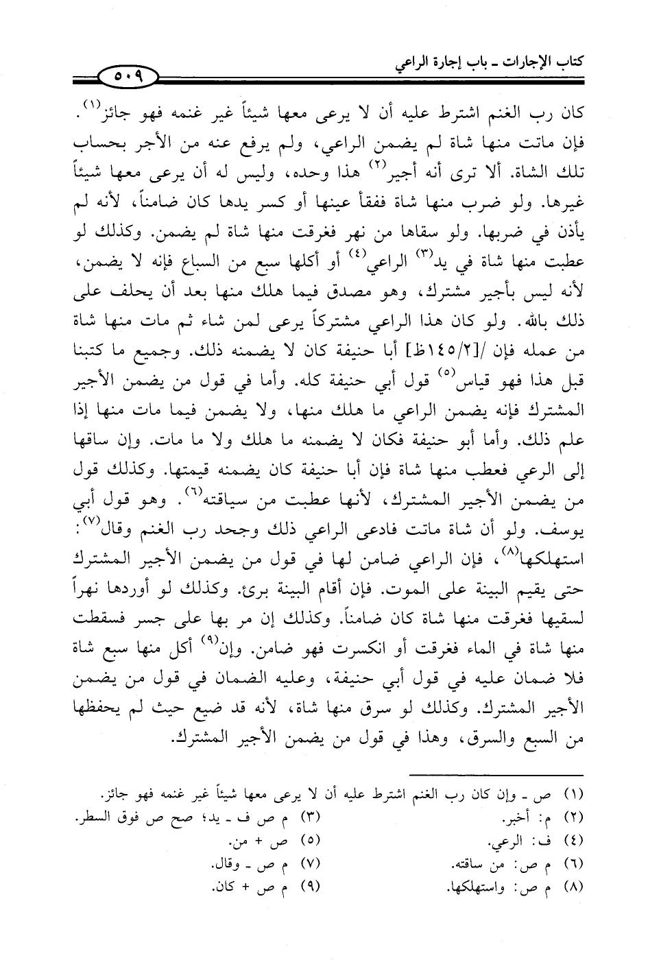 (¬1) ص - كان كان رب الغنم اشترط عليه أن لا يرعى معها شيئاً غير غنمه فهو جائز.