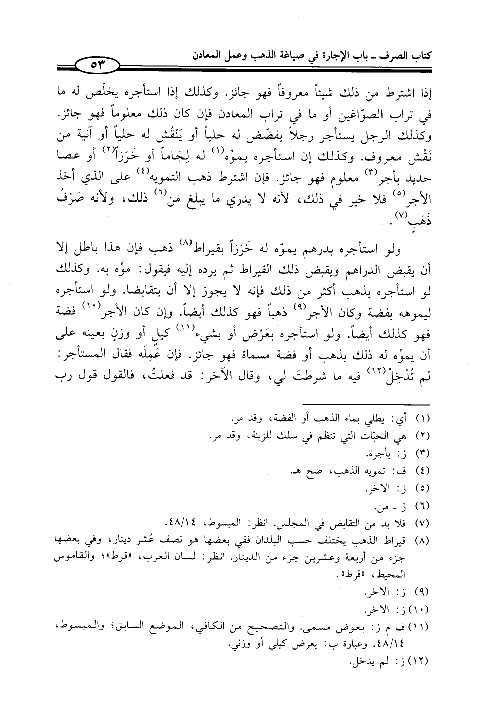 (¬8) قيراط الذهب يختلف حسب البلدان ففي بعضها هو نصف عُشر دينار، وفي بعضها جزء من أربعة وعشرين جزء من الدينار. انظر: لسان العرب، "قرط"؛ والقاموس المحيط، "قرط".