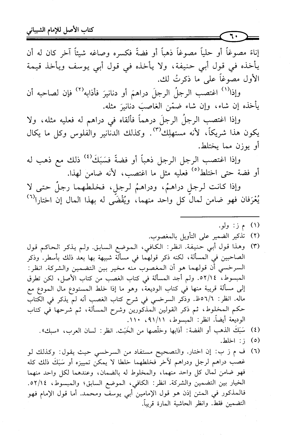 (¬3) وهذا قول أبي حنيفة. انظر: الكافي، الموضع السابق. ولم يذكر الحاكم قول الصاحبين في المسألة، لكنه ذكر قولهما في مسألة شبيهة بها بعد ذلك بأسطر. وذكر السرخسي أن قولهما هو أن المغصوب منه مخير بين التضمين والشركة. انظر: المبسوط، 14/ 52. ولم أجد المسألة في كتاب الغصب من كتاب الأصل، لكن تطرق إلى مسألة قريبة منها في كتاب الوديعة، وهو ما إذا خلط المستودع مال المودع مع ماله. انظر: 6/ 56 ظ. وذكر السرخسي في شرح كتاب الغصب أنه لم يذكر في الكتاب حكم المخلوط، ثم ذكر القولين المذكورين وشرح المسألة، ثم شرحها في كتاب الوديعة أيضاً. انظر: المبسوط، 11/ 91، 110.