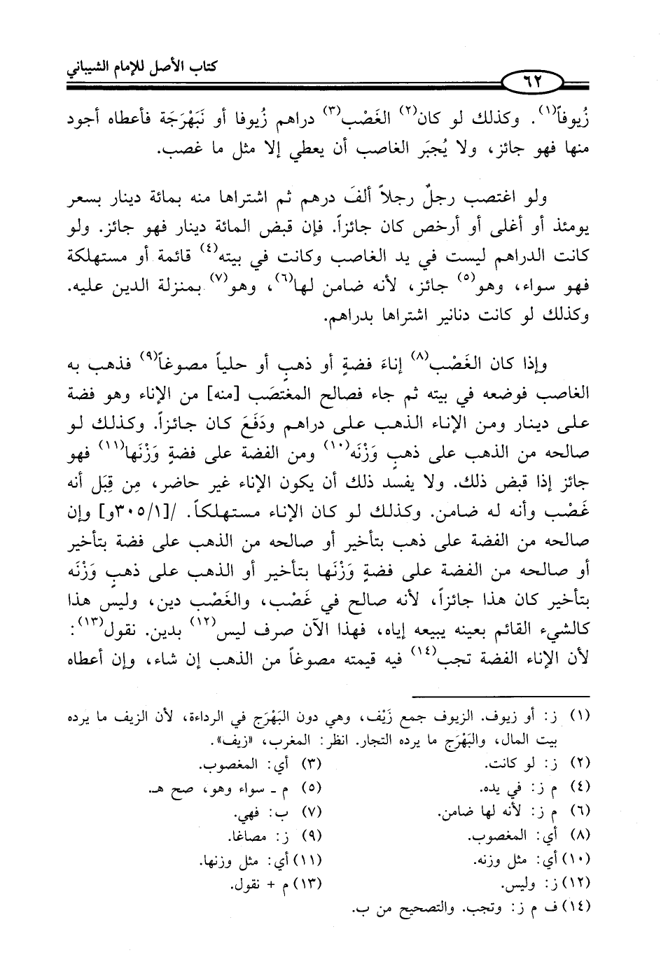 (¬1) ز: أو زيوف. الزيوف جمع زَيْف، وهي دون البَهْرَج في الرداءة، لأن الزيف ما يرده بيت المال، والبَهْرَج ما يرده التجار. انظر: المغرب، "زيف".