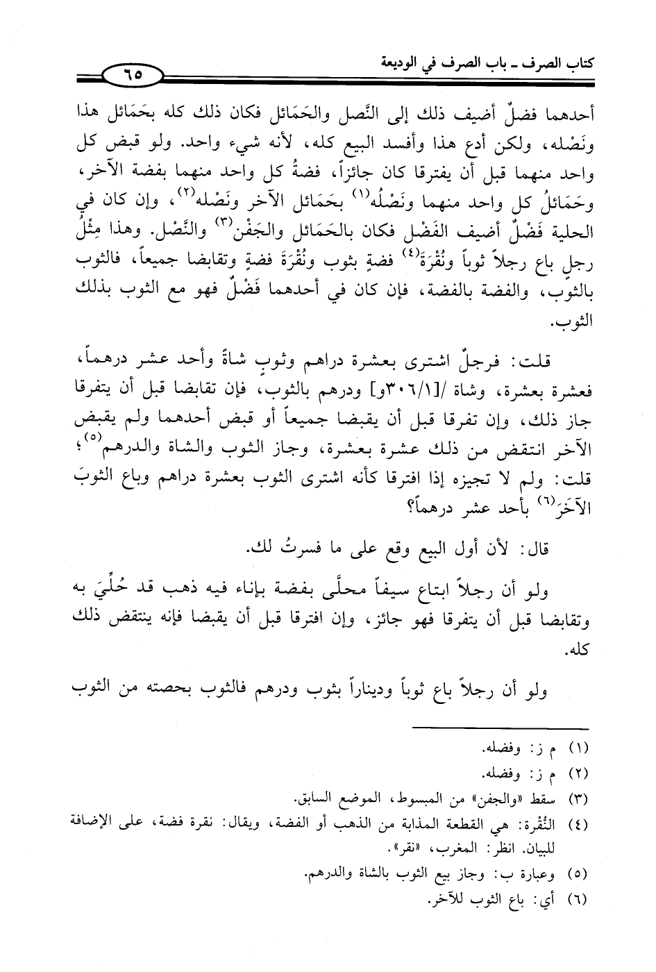 (¬5) وعبارة ب: وجاز بيع الثوب بالشاة والدرهم.