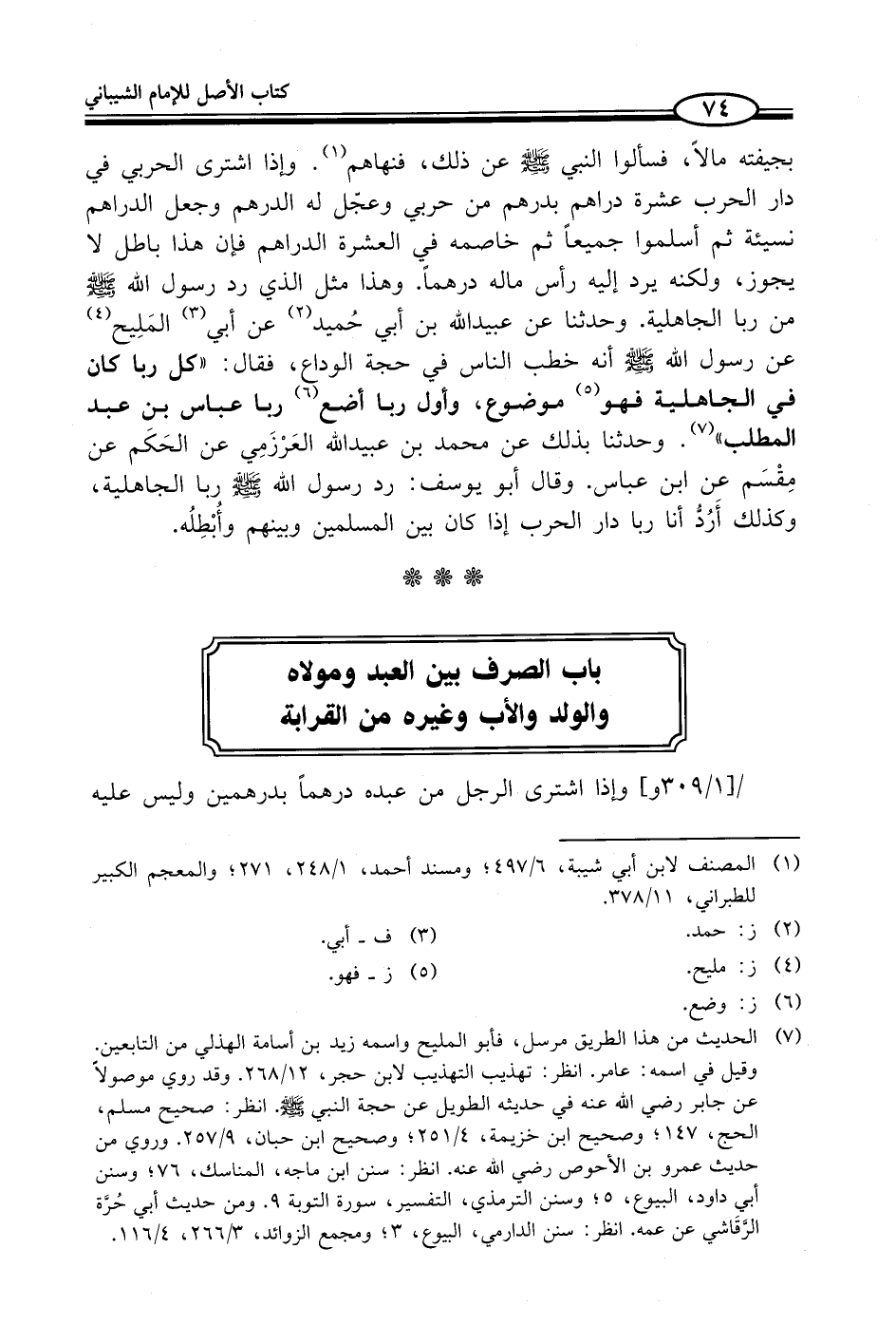 باب الصرف بين العبد ومولاه والولد والأب وغيره من القرابة