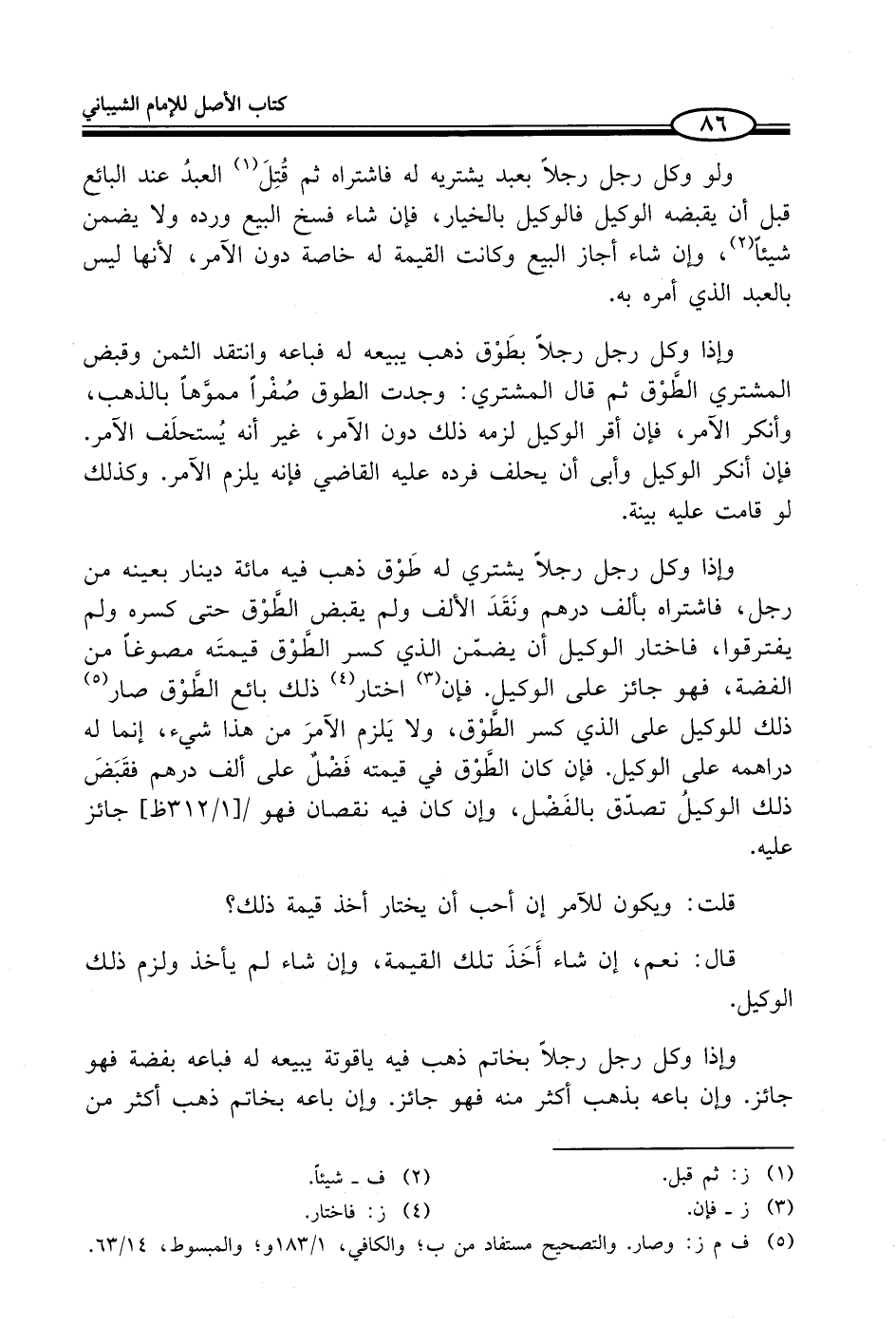 (¬5) ف م ز: وصار. والتصحيح مستفاد من ب؛ والكافي، 1/ 183 و؛ والمبسوط، 14/ 63.