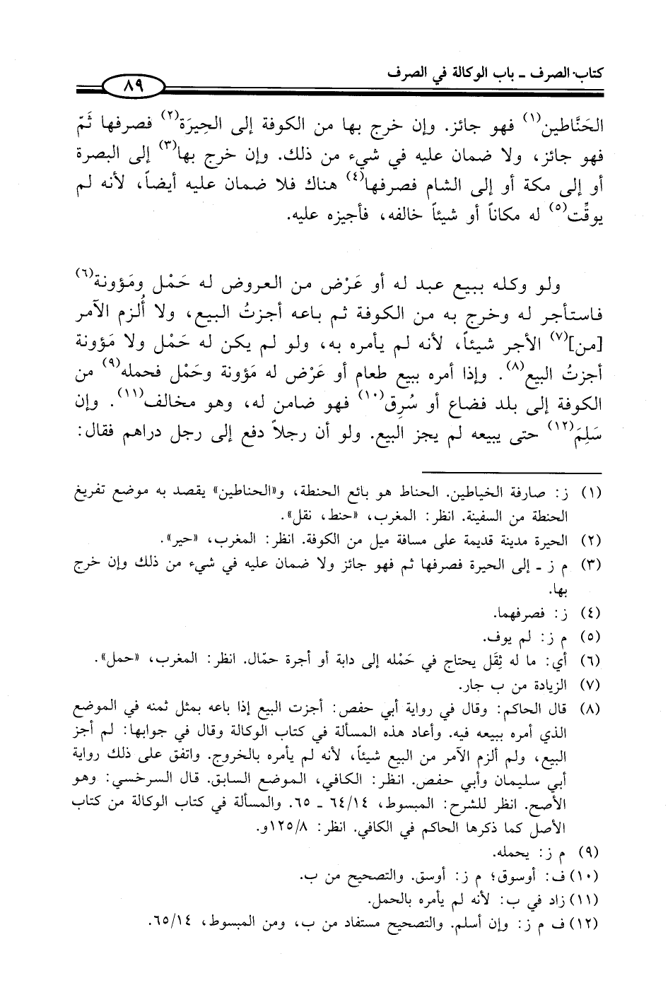 (¬3) م ز - إلى الحيرة فصرفها ثم فهو جائز ولا ضمان عليه في شيء من ذلك وإن خرج بها.