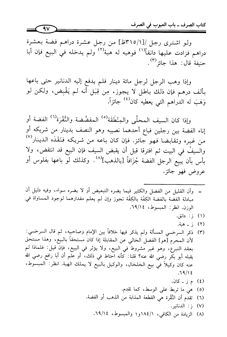 = وأن القليل من الفضل والكثير فيما يضره التبعيض أو لا يضره سواء، وفيه دليل أن مبادلة الفضة بالفضة الكِفّة بالكِفّة تجوز وإن لم يعلم مقدارهما لوجود المساواة في الوزن. انظر: المبسوط، 14/ 69.