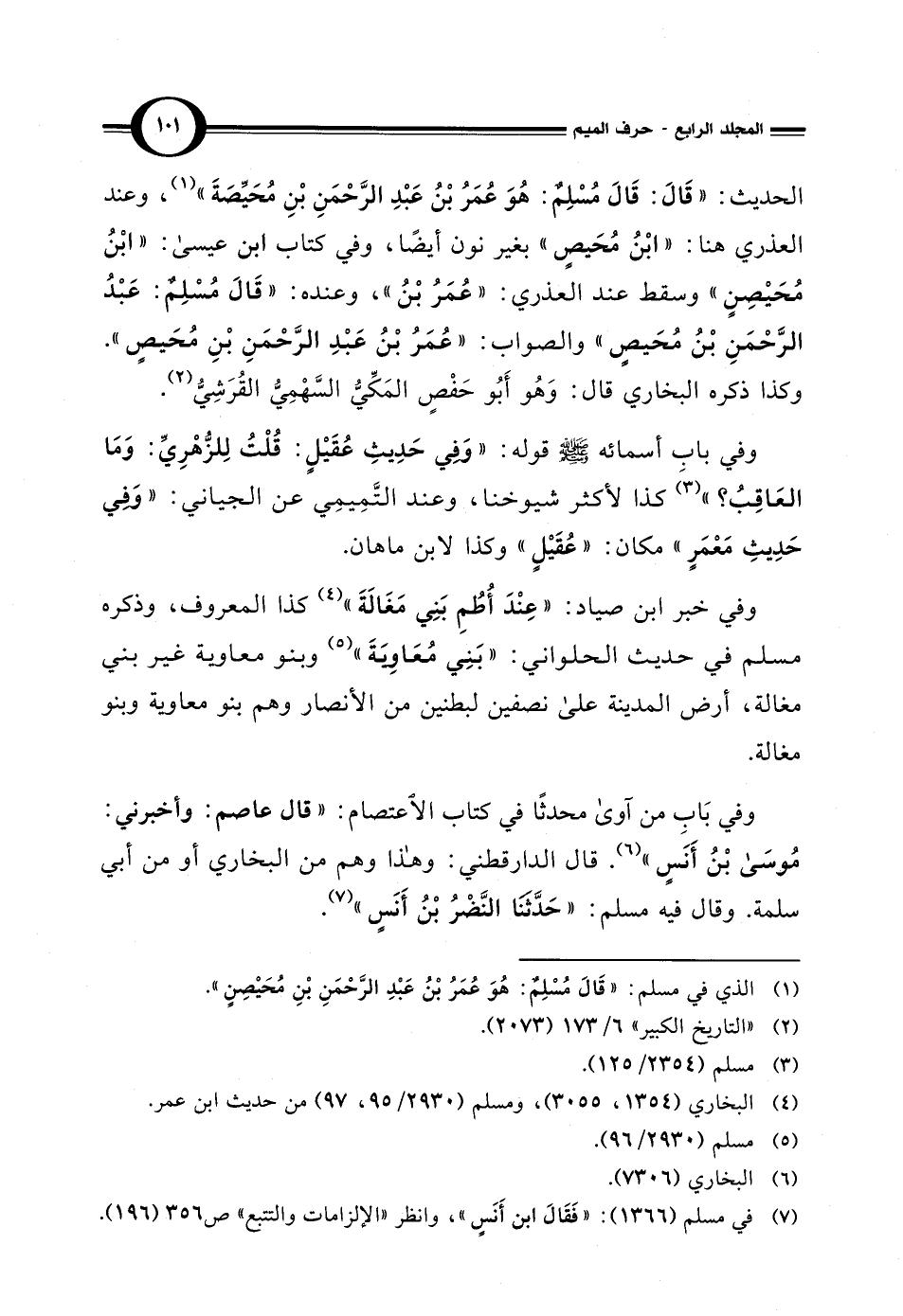 (¬1) الذي في مسلم: "قَالَ مُسْلِمٌ: هُوَ عُمَرُ بْنُ عَبْدِ الرَّحْمَنِ بْنِ مُحَيْصِنٍ".