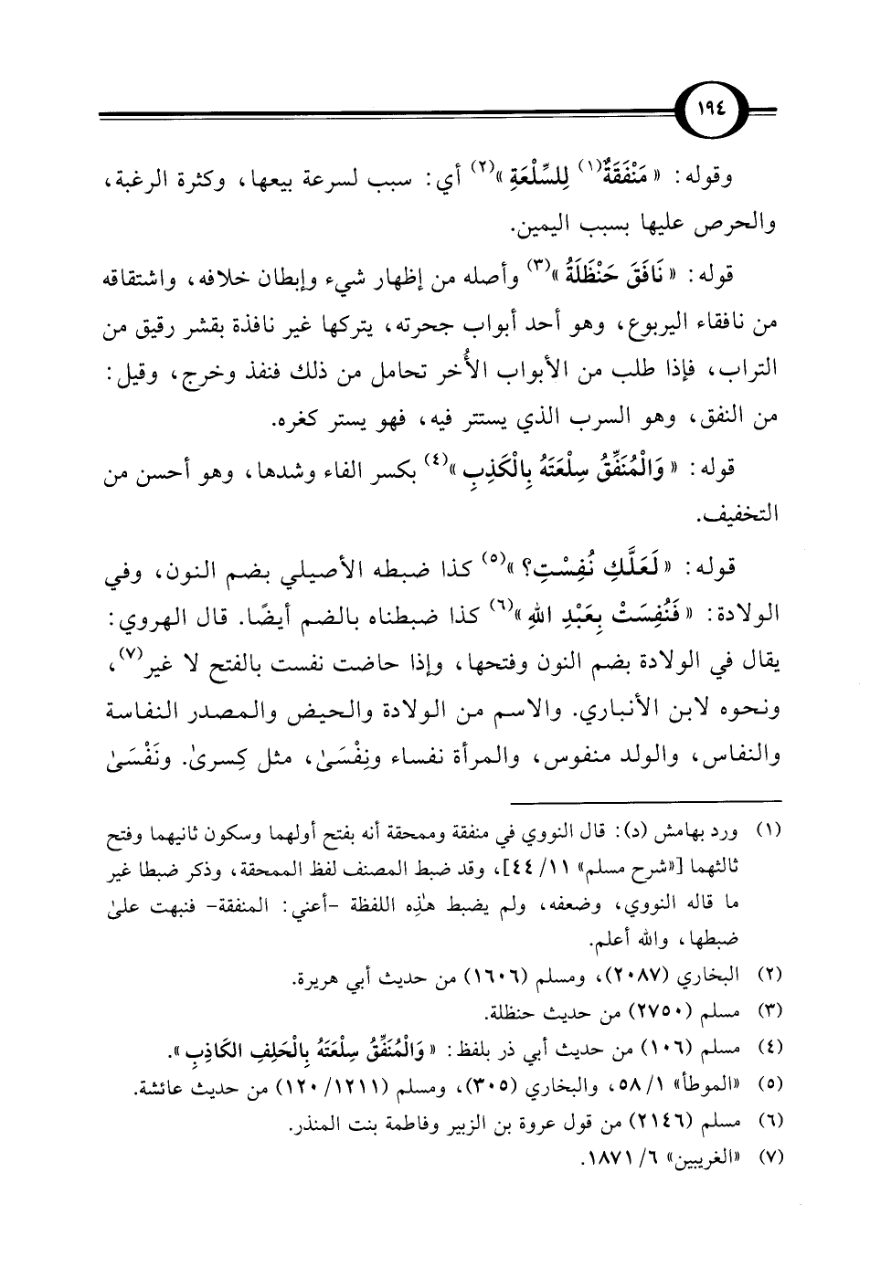 (¬1) ورد بهامش (د): قال النووي في منفقة وممحقة أنه بفتح أولهما وسكون ثانيهما وفتح ثالثهما ["شرح مسلم" 11/ 44]، وقد ضبط المصنف لفظ الممحقة، وذكر ضبطا غير ما قاله النووي، وضعفه، ولم يضبط هذه اللفظة - أعني: المنفقة - فنبهت على ضبطها، والله أعلم.