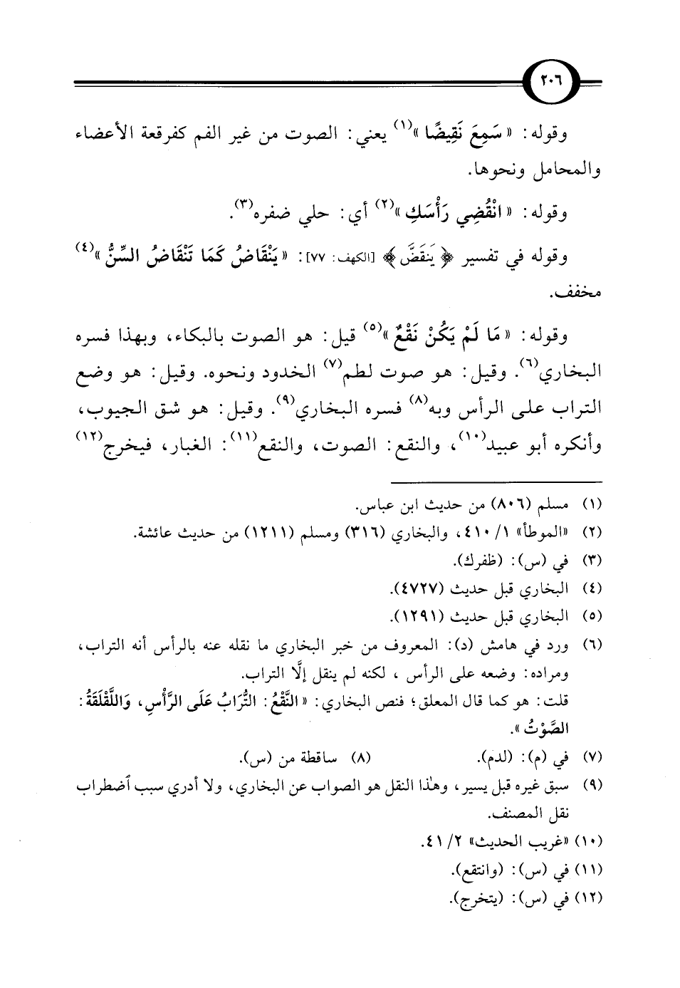 (¬6) ورد في هامش (د): المعروف من خبر البخاري ما نقله عنه بالرأس أنه التراب، ومراده: وضعه على الرأس، لكنه لم ينقل إلاَّ التراب. قلت: هو كما قال المعلق؛ فنص البخاري: "النَّقْعُ: التُّرَابُ عَلَى الرَّأْسِ، وَاللَّقْلَقَةُ: الصَّوْتُ".