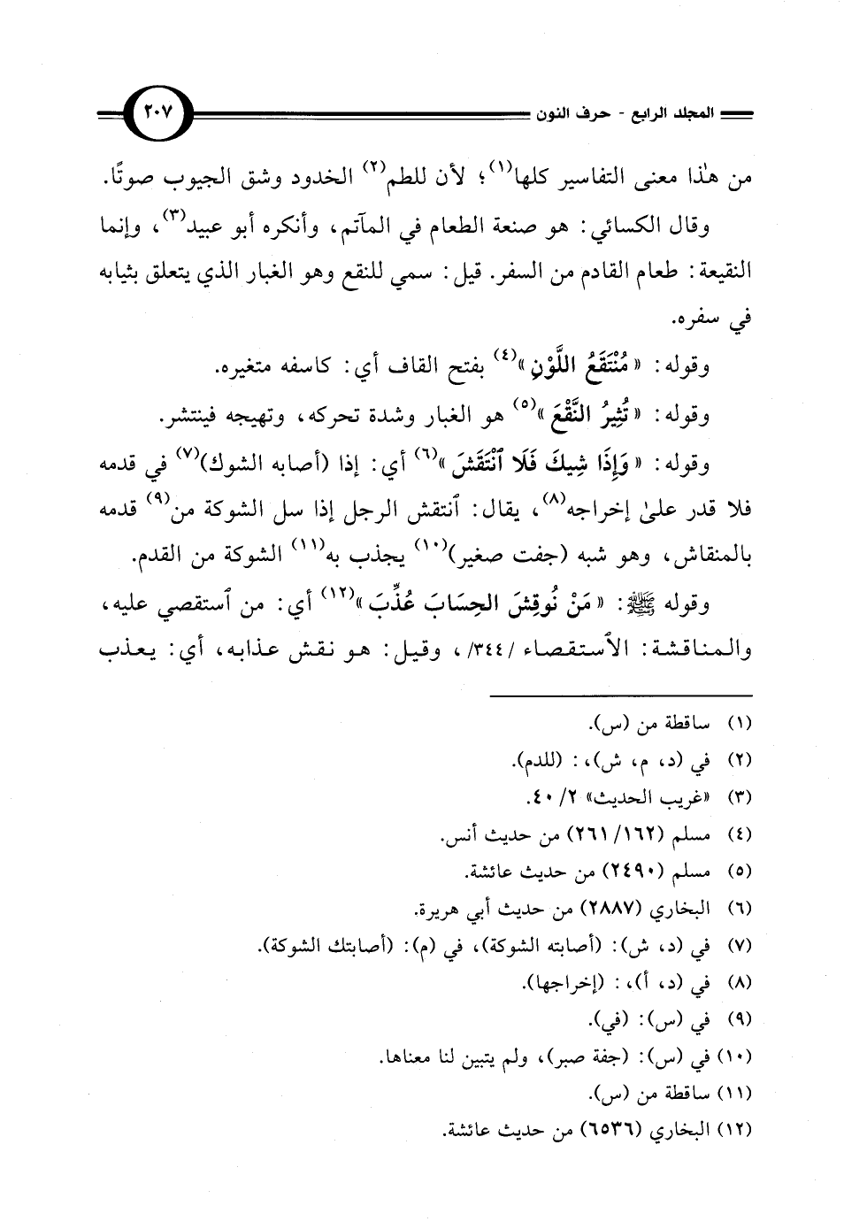 وقوله - صلى الله عليه وسلم -: "مَنْ نُوقِشَ الحِسَابَ عُذِّبَ" (¬12) أي: من استقصي عليه، والمناقشة: الاستقصاء، وقيل: هو نقش عذابه، أي: يعذب