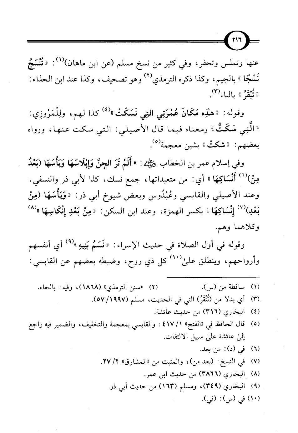 وفي إسلام عمر بن الخطاب - رضي الله عنه -: "أَلَمْ تَرَ الجِنَّ وإِبْلَاسَهَا وَبَأْسَهَا (بَعْدُ مِنْ) (¬6) أَنْسَاكِهَا" أي: من متعبداتها، جمع نسك، كذا لأبي ذر والنسفي، وعند الأصيلي والقابسي وعُبْدُوس وبعض شيوخ أبي ذر: "وَيَأْسَهَا (مِنْ بَعْدِ) (¬7) إِنْسَاكِهَا" بكسر الهمزة، وعند ابن السكن: "مِنْ بَعْدِ إِنْكَاسِهَا" (¬8) وكلاهما وهم.
