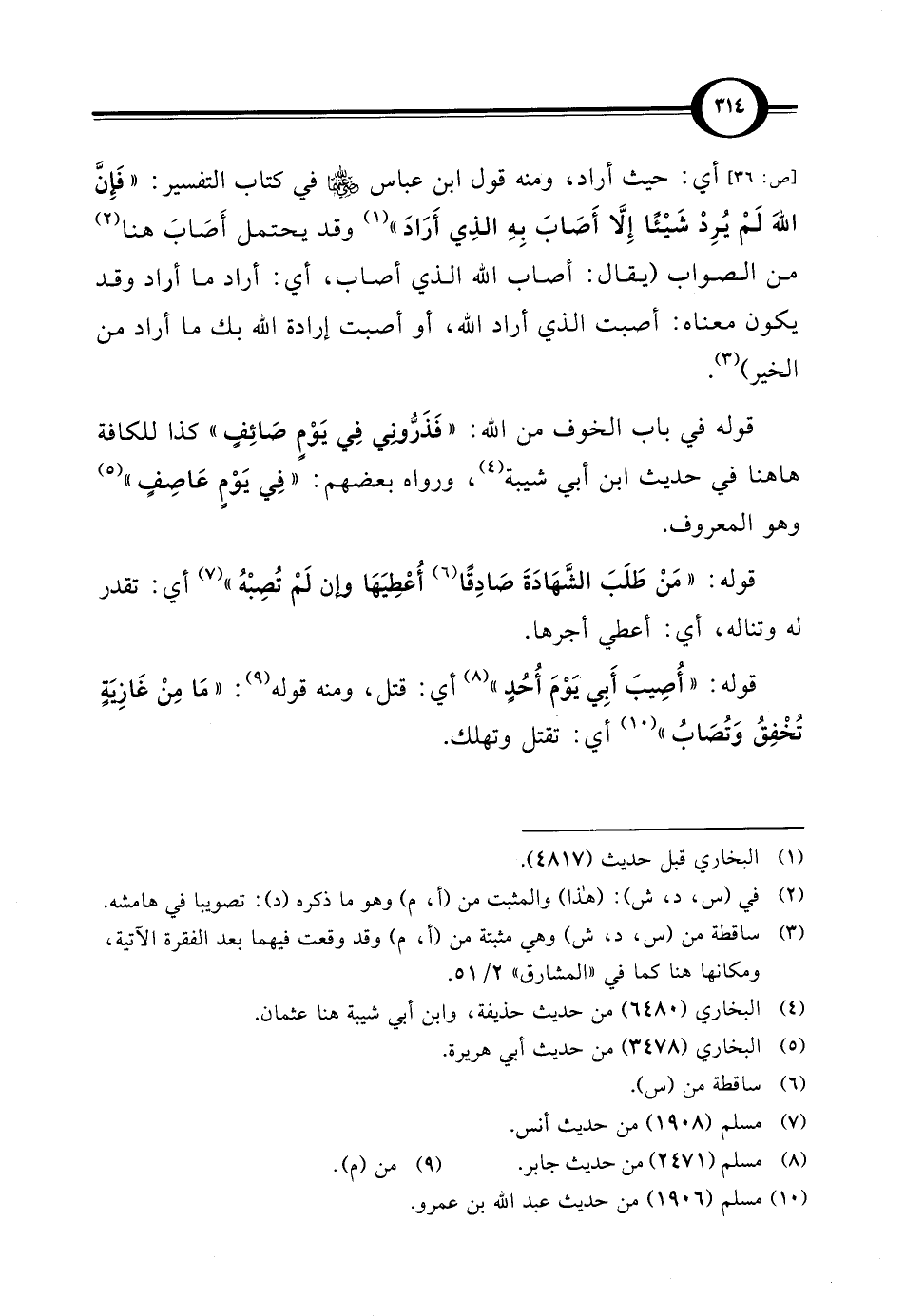 [ص: 36] أي: حيث أراد، ومنه قول ابن عباس رضي الله عنهما في كتاب التفسير: "فَإنَّ الله لَمْ يُرِدْ شَيْئًا إِلَّا أَصَابَ بِهِ الذِي أَرَادَ" (¬1) وقد يحتمل أَصَابَ هنا (¬2) من الصواب (يقال: أصاب الله الذي أصاب، أي: أراد ما أراد وقد يكون معناه: أصبت الذي أراد الله، أو أصبت إرادة الله بك ما أراد من الخير) (¬3).