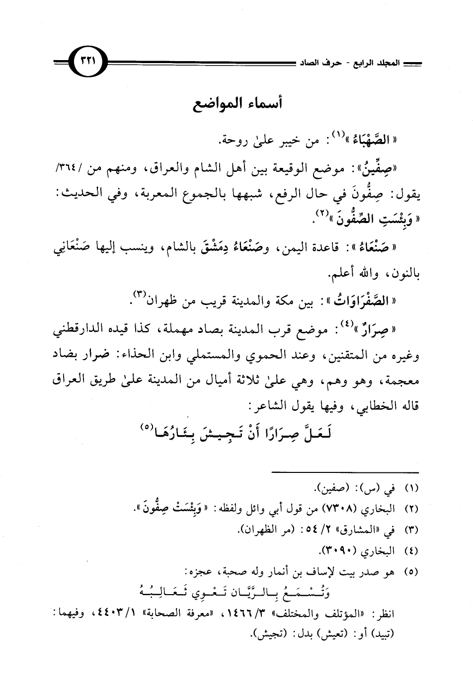 "صِرَارٌ" (¬4): موضع قرب المدينة بصاد مهملة، كذا قيده الدارقطني وغيره من المتقنين، وعند الحموي والمستملي وابن الحذاء: ضرار بضاد معجمة، وهو وهم، وهي على ثلاثة أميال من المدينة على طريق العراق قاله الخطابي، وفيها يقول الشاعر:
