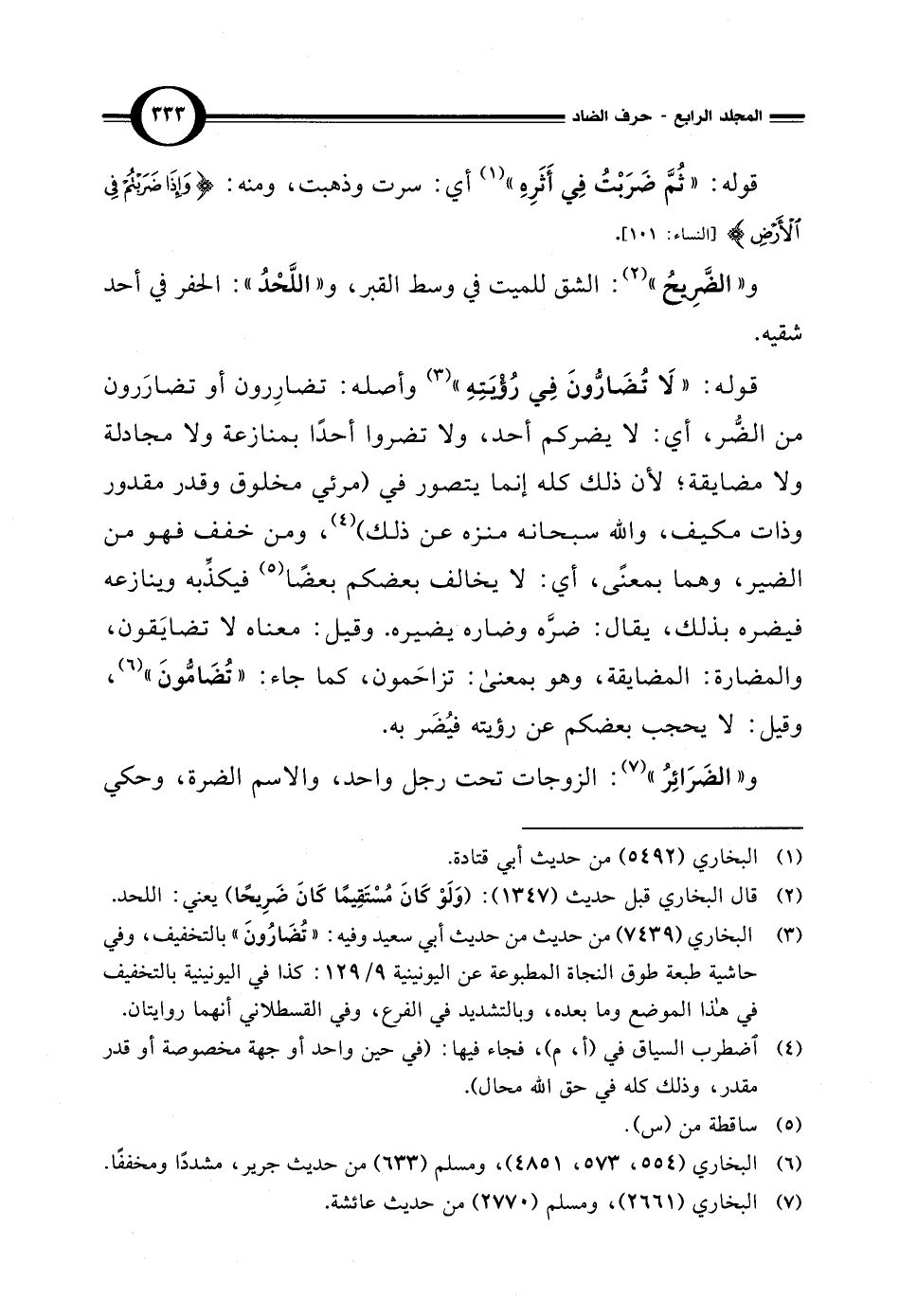 و"الضَرَائِرُ" (¬7): الزوجات تحت رجل واحد، والاسم الضرة، وحكي