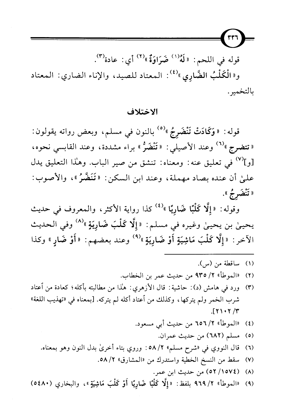(¬9) "الموطأ" 2/ 969 بلفظ: "إِلَّا كَلْبًا ضَارِيًا أَوْ كَلْبَ مَاشِيَةٍ"، والبخاري (5480)