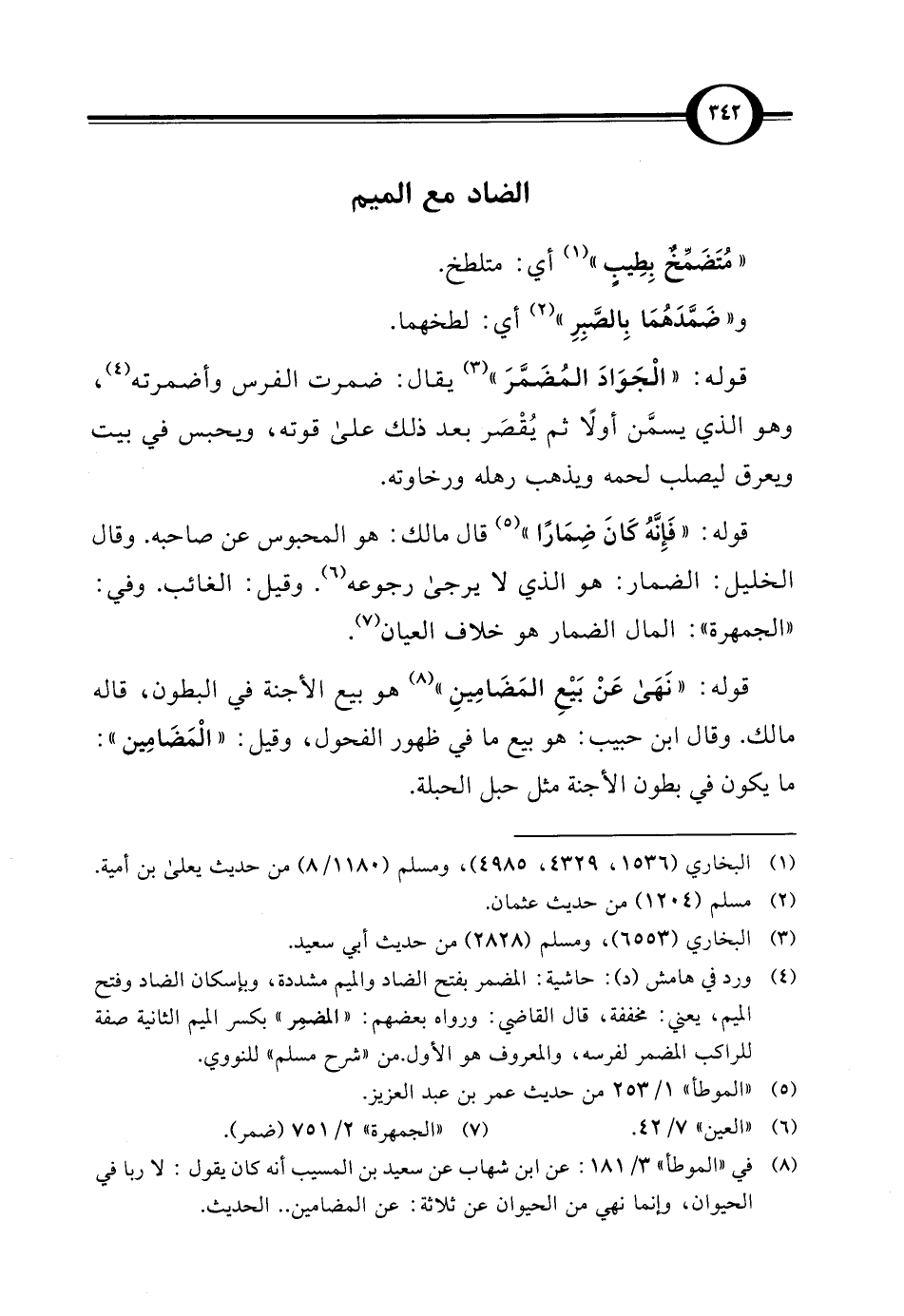 قوله: "فَإِنَّهُ كَانَ ضِمَارًا" (¬5) قال مالك: هو المحبوس عن صاحبه. وقال الخليل: الضمار: هو الذي لا يرجي رجوعه (¬6). وقيل: الغائب. وفي: "الجمهرة": المال الضمار هو خلاف العيان (¬7).