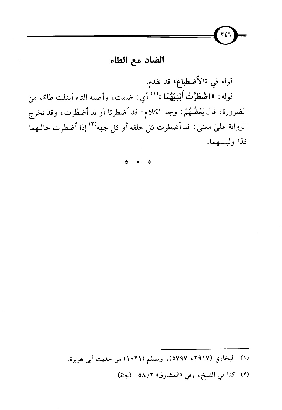 قوله: "اضْطَرَّتْ أَيْدِيَهُمَا" (¬1) أي: ضمت، وأصله التاء أبدلت طاءً، من الضرورة، قال بَعْضُهُمْ: وجه الكلام: قد اضطرتا أو قد اضطُرت، وقد تخرج الرواية علي معني: قد اضطرت كل حلقة أو كل جهة (¬2) إذا اضطرت حالتهما كذا ولبستهما.