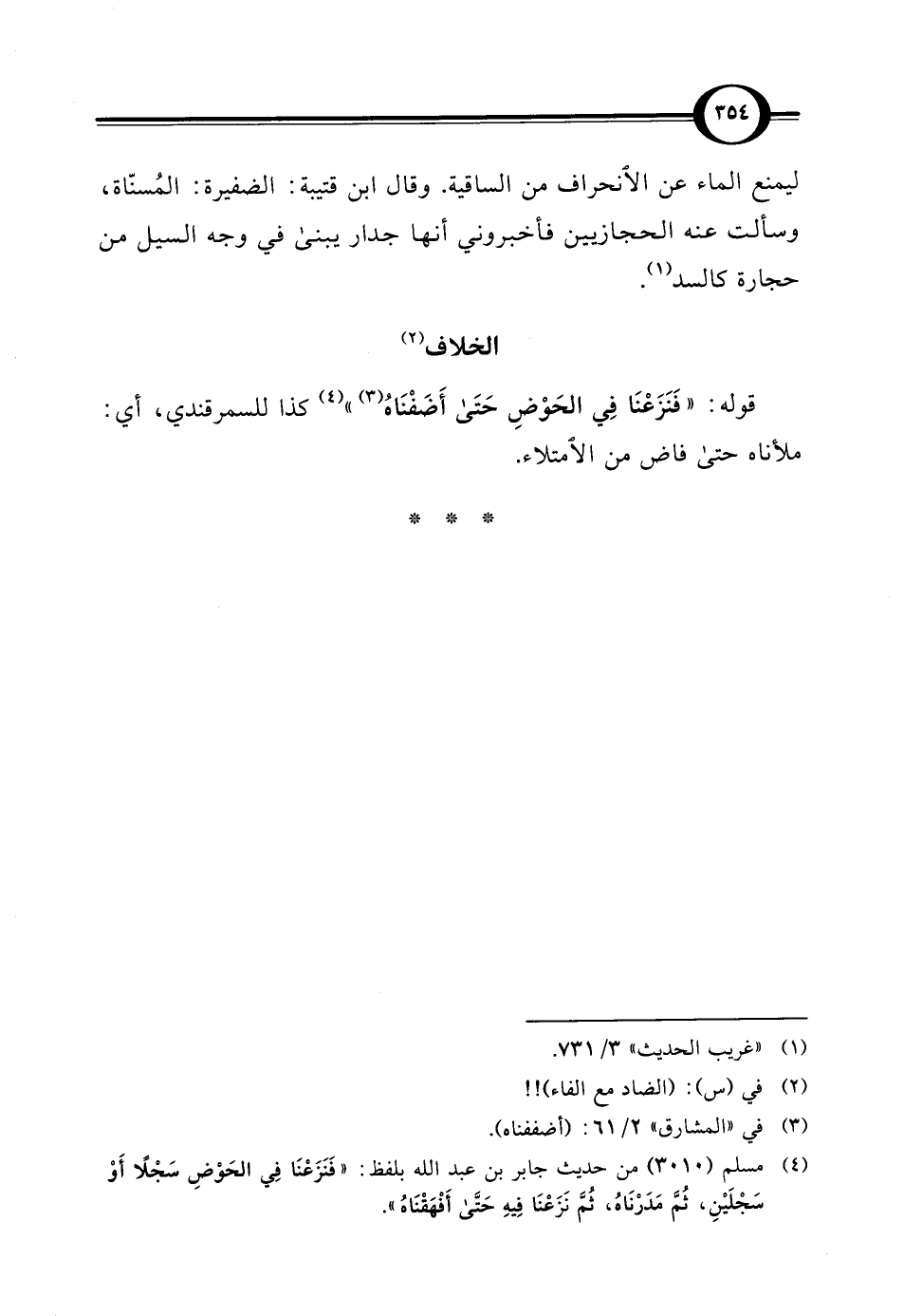 (¬4) مسلم (3010) من حديث جابر بن عبد الله بلفظ: "فَنَزَعْنَا في الحَوْضِ سَجْلًا أَوْ سَجْلَيْنِ، ثُمَّ مَدَرْنَاهُ، ثُمَّ نَزَعْنَا فِيهِ حَتَّى أَفْهَقْنَاهُ".