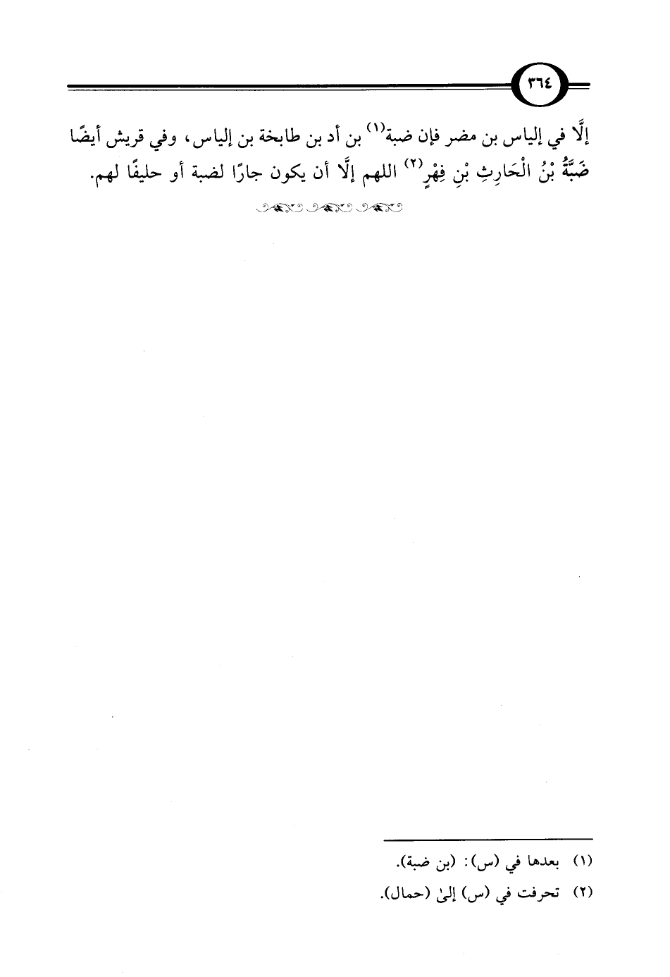 إلَّا في إلياس بن مضر فإن ضبة (¬1) بن أد بن طابخة بن إلياس، وفي قريش أيضًا ضَبَّةُ بْنُ الْحَارِثِ بْنِ فِهْرٍ (¬2) اللهم إلَّا أن يكون جارًا لضبة أو حليفًا لهم.