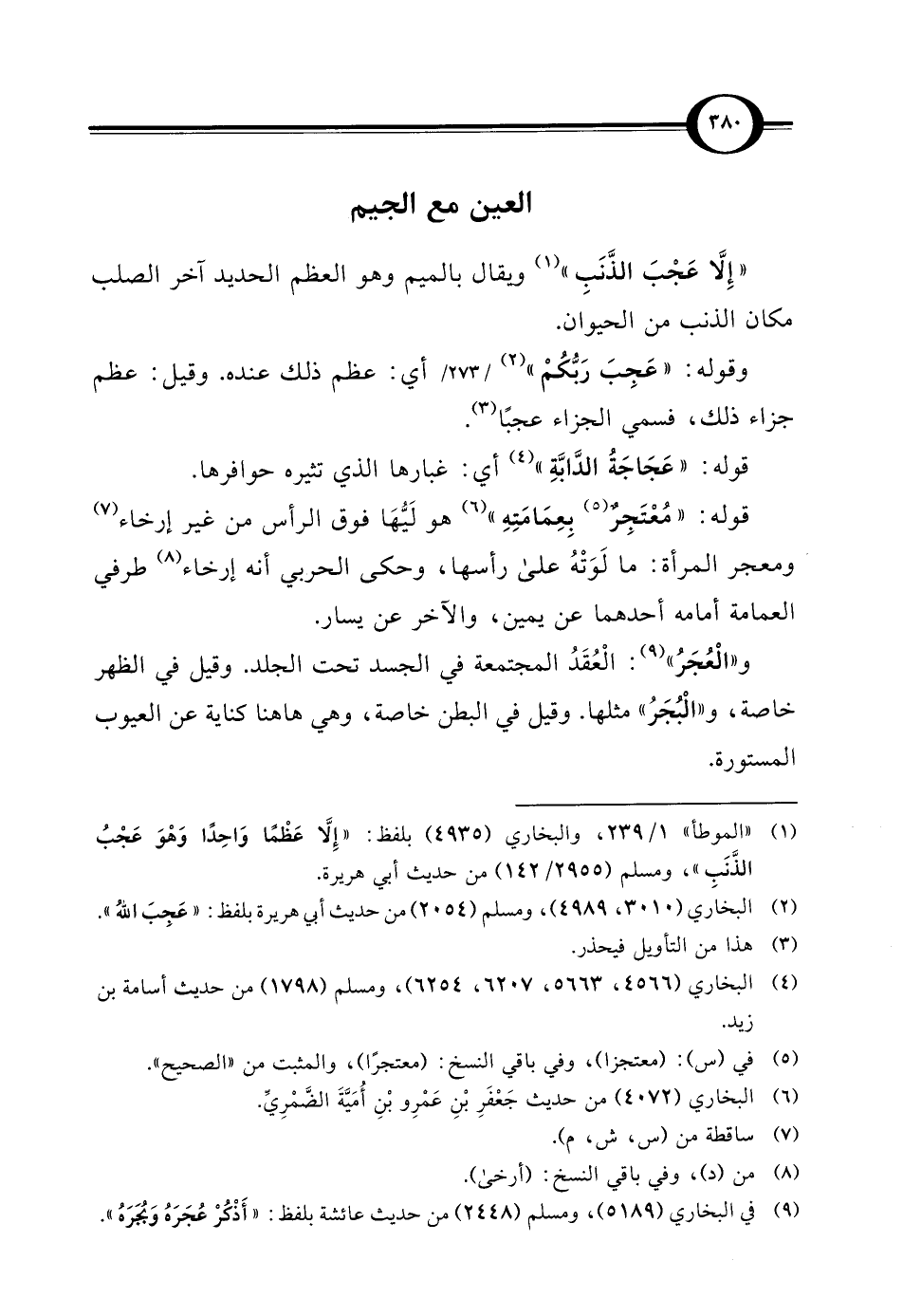 " إِلَّا عَجْبَ الذَّنَبِ" (¬1) ويقال بالميم وهو العظم الحديد آخر الصلب مكان الذنب من الحيوان.