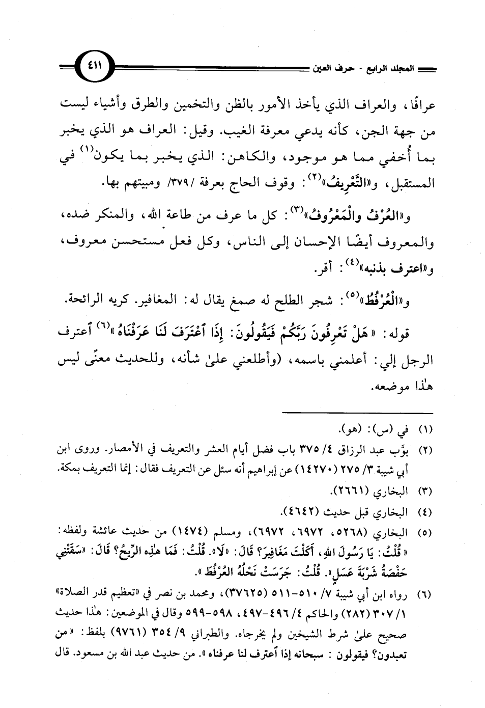 و"العُرْفُ والْمَعْرُوف" (¬3): كل ما عرف من طاعة الله، والمنكر ضده، والمعروف أيضًا الإحسان إلى الناس، وكل فعل مستحسن معروف، و"اعترف بذنبه" (¬4): أقر.
