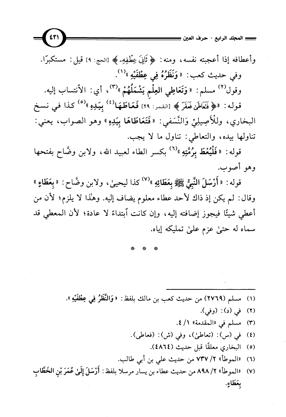 (¬7) "الموطأ" 2/ 898 من حديث عطاء بن يسار مرسلاً بلفظ: أَرْسَلَ إلى عُمَرَ بْنِ الخَطَّابِ بِعَطَاءٍ.
